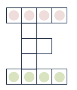 The aim of the E puzzle is to reverse the positions of the Green and Red counters in the grid by sliding them along. There are rules of course to make it a challenge: