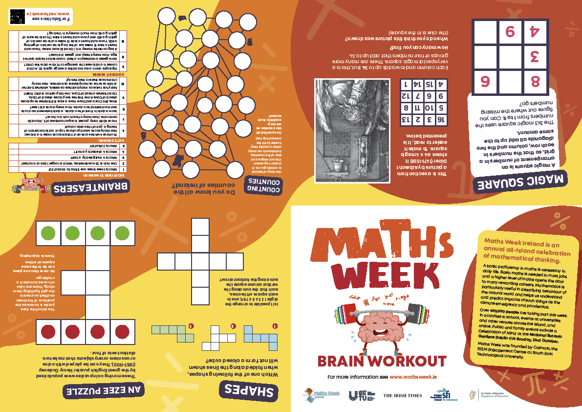 One side will contain puzzles and games to give your brain a good workout and the reverse will feature an attractive poster celebrating women in mathematics.